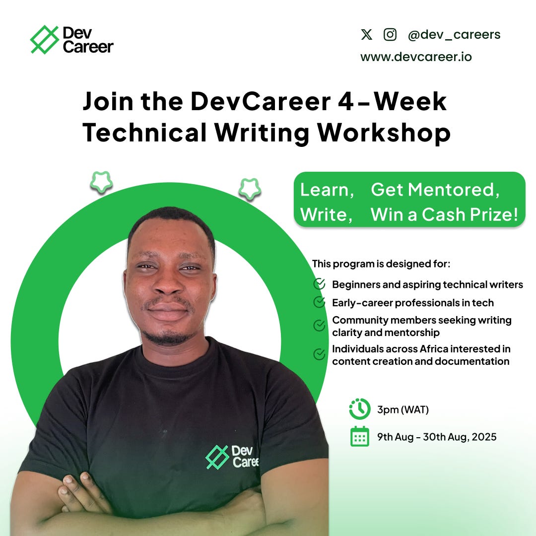 Join over 100 aspiring writers already signed up for the DevCareer Technical Writing Workshop kicking off August 9th, 2025!